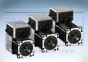 A kompakt 3-fázisú léptetőmotorok, digitális vezérlőegységgel és végfokkal egybeépített hajtások. A készülékek alapja 57 vagy 85 mm méretű BRS3 (VRDM) 3-fázisú léptetőmotor. A jelenleg kapható 6-féle motor nyomatéka 0,45-6,0 Nm között változik. Tápellátásuk 24 VDC vagy 36 VDC lehet. A motorokat bolygóműves hajtóművel (PLE sorozat) szerelve is szállítjuk. Kétféle elektronika típus létezik, az IDS és IFS: IDS - a meghajtó csak a beépített végerősítőt tartalmaz, mely az impulzus / irány vagy az A / B léptetőjeleket képes fogadni. Felbontásuk 200 és 10.000 lépés / fordulat között változtatható. 5V vagy 24V bemeneti jelszintek, optocsatolású bemenetek. RS-422 bemenettel is rendelkezik (galvanikus leválasztás nélkül). Módosított változata az IDS-MIO - előre programozható kivitel maximum 16 programhellyel, melyeket bináris bemenetekkel lehet megcímezni. Az útprogramok ciklusba is szervezhetők. IFS - vezérlőelektronikája már komplett szolgáltatásokat is tartalmaz pl.: helymeghatározás vagy fordulatszám-szabályozás, ezenkívül többféle kommunikációs modullal is rendelhető: RS-485, Profibus DP, CanOpen, DeviceNet vagy Ethernet (protokollok EtherCAT, Powerlink, Ethernet / IP vagy Modbus TCP). PLC vezérlő rendszer elküldi a működtető parancsot, hogy hajtsa végre a kívánt funkciót illetve ellenőrizze a motor mindenkori állapotát. |